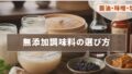 無添加食品を生活に取り入れる際、まず取り入れやすいのは「調味料」「加工食品」「飲料」など、日常的に使用する頻度が高いものです。ここでは、それぞれのジャンルでおすすめの選び方を解説します。